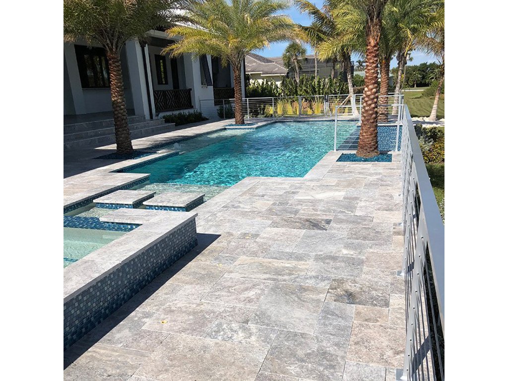 Bazénový lem - stříbrný travertin, bubnovaná povrchová úprava