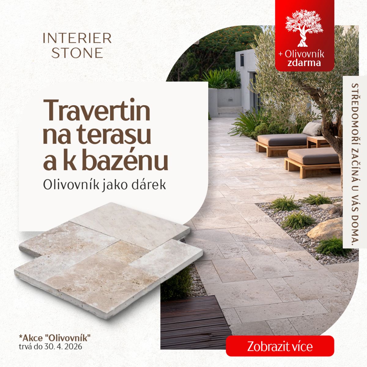 Středomoří u vás doma: travertinová dlažba + olivovník jako dárek