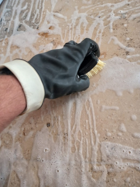 Nejčastěji řešíme zašlý mramor a travertin v interiéru a znečištěné travertinové venkovní dlažby.
