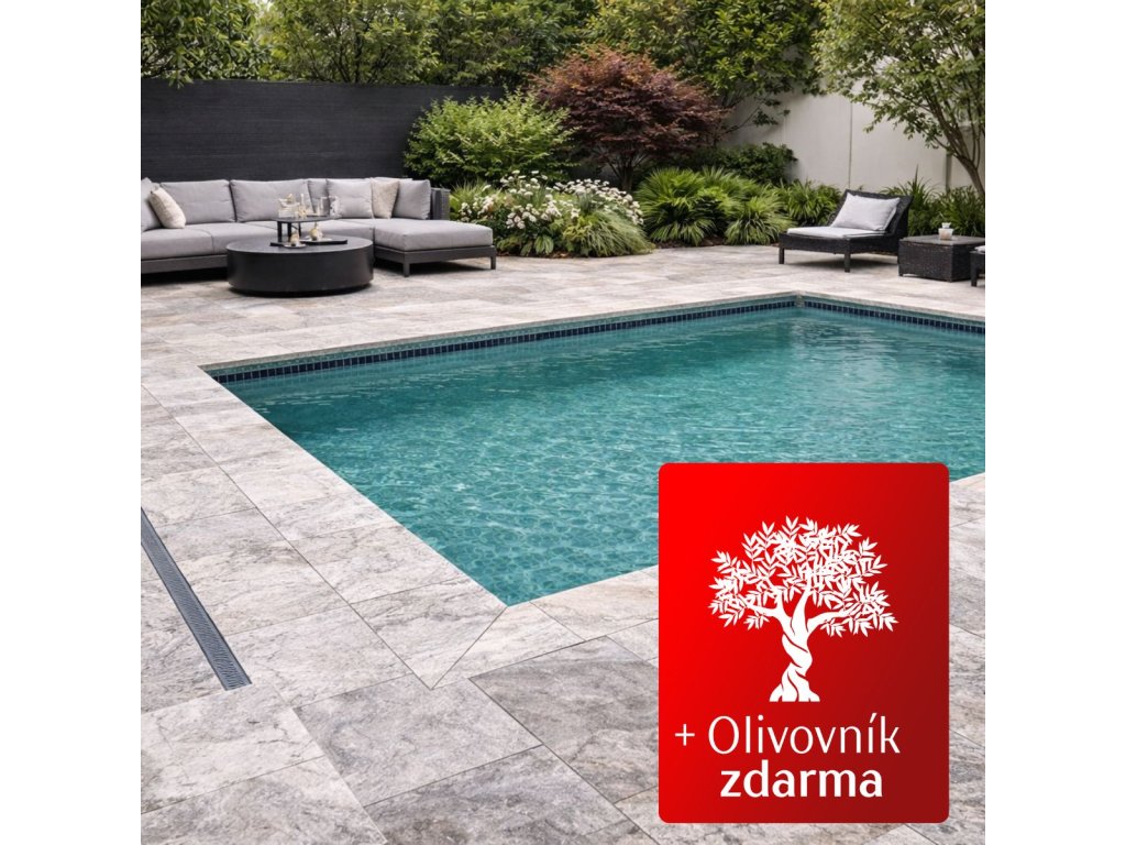 Objednejte minimálně 40 m² travertinové dlažby bubnované (610×406×30 mm nebo francouzský styl 3 cm) a získejte olivovník v hodnotě 5 000 Kč zdarma.
