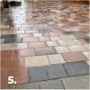 2. U zámkových dlažeb přejeďte vibračním strojem, aby vibrace zapracovaly částice písku do spár a netvrořili se dutiny. U větších formátů dlažby použijte na vibrační stroj gumovou podložku, aby se částice písku rozvibrovaly do dutin. Na menší plochy postačí gumové kladívko s kouskem dřeva. Případný další písek vmeťte do spár tak, aby výška písku byla přibližně 3 mm pod povrchem dlažby (spáry nepřeplňujte). Odstraňte přebytečný produkt z povrchu. Opakujte zhutnění.